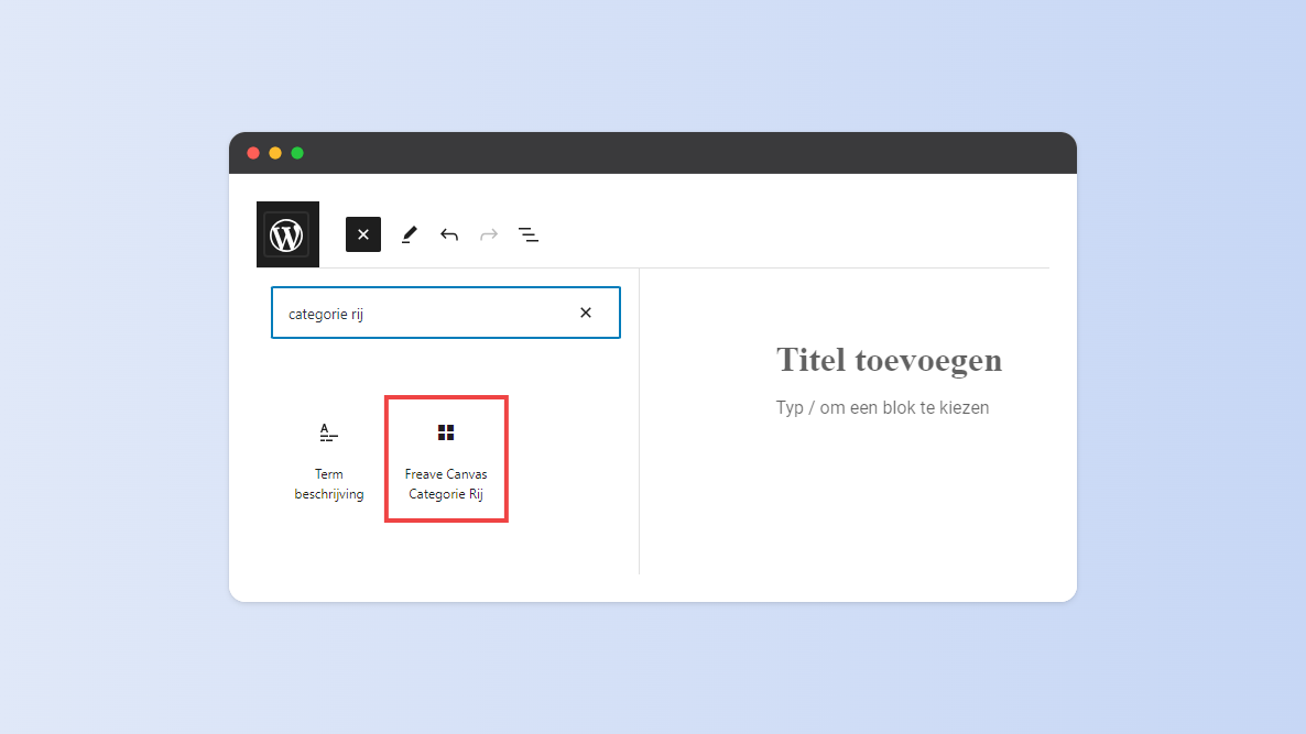 Je kunt het “Categorie Rij”-blok op pagina's en artikelen toevoegen.