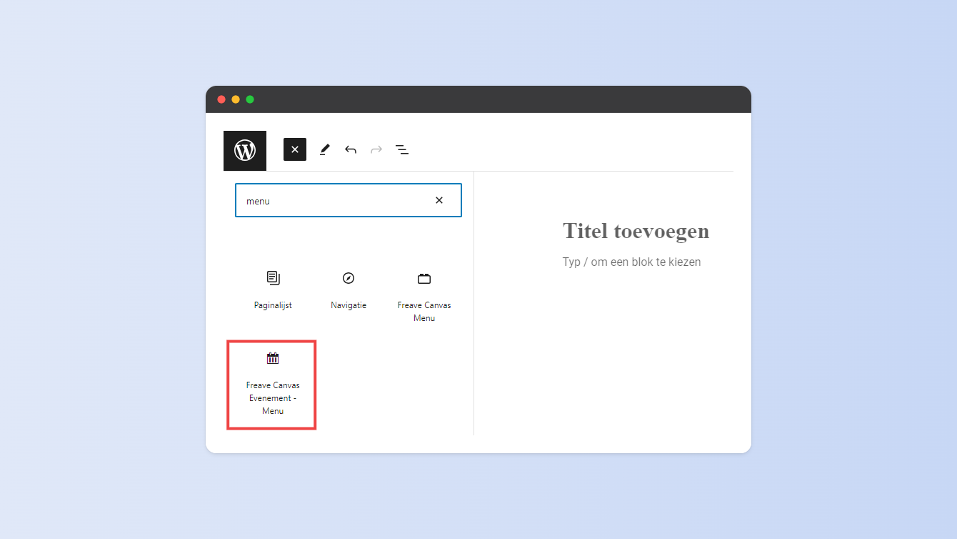 Je kunt het “Menu”-blok op evenement berichten toevoegen.