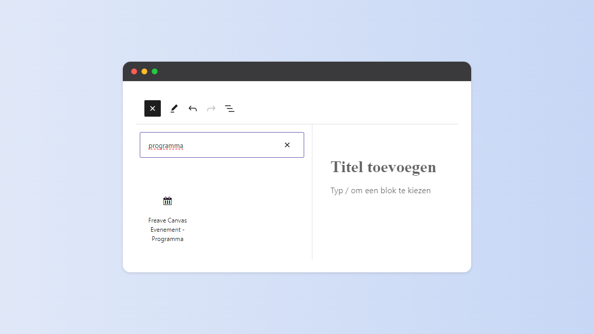 Je kunt het “Programma”-blok op evenement berichten toevoegen.